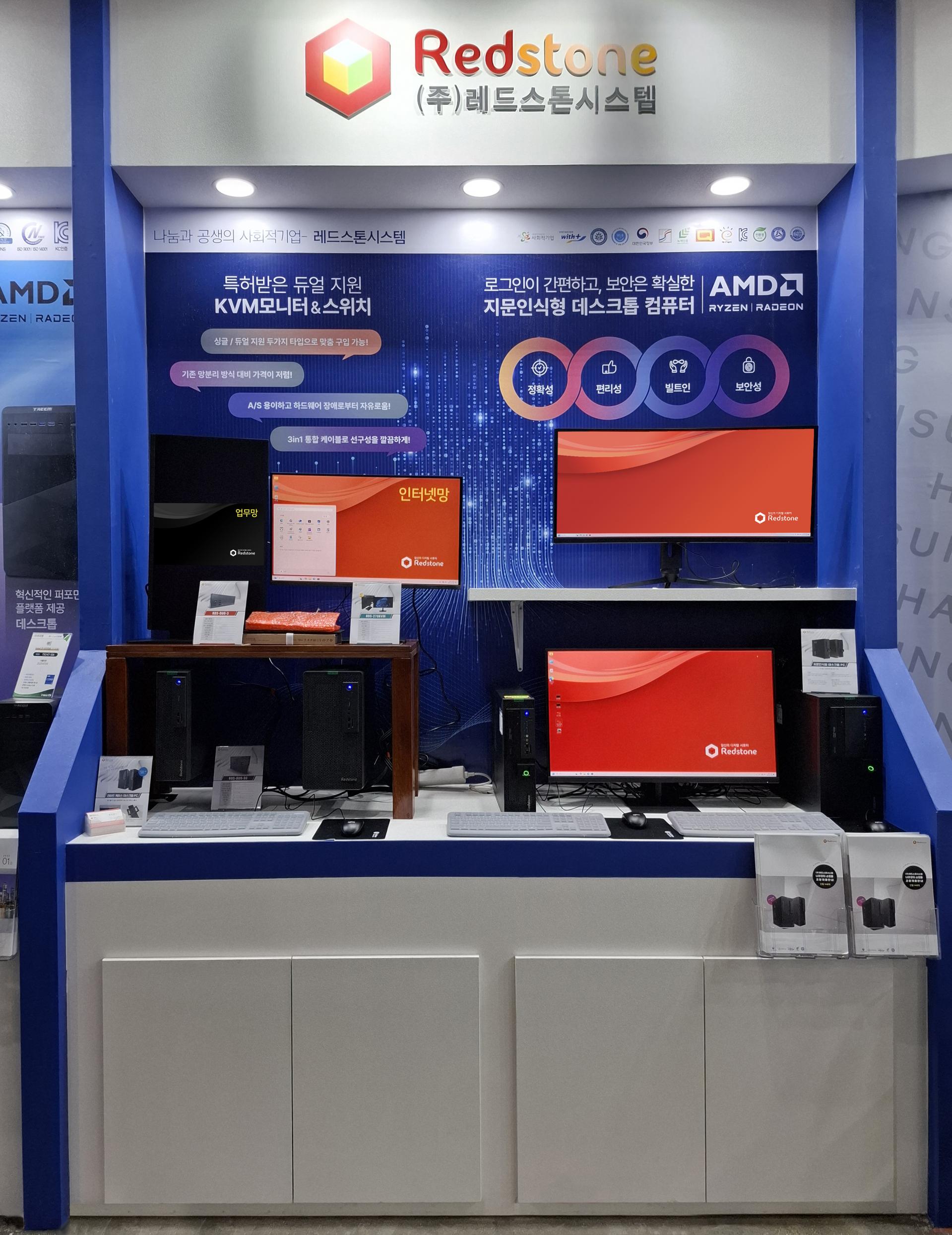 레드스톤시스템은 신제품 lite 케이스를 필두로 34인치 및 32인치 모니터, 특허받은 KVM모니터와 스위치를 적극 홍보했습니다.